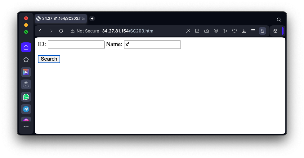 http://35.222.29.122/SC203.htmEnter this name into the form:
