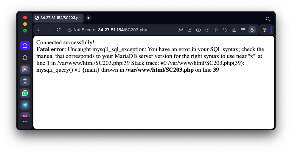 https://samlols.samsclass.info/SC/SC203.htmEnter the URL to your PHP page in the form for flag SC 203.3 and submit the form. If your code is correct, the flag will appear.