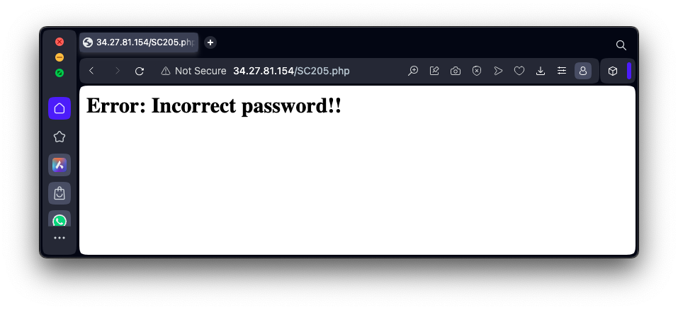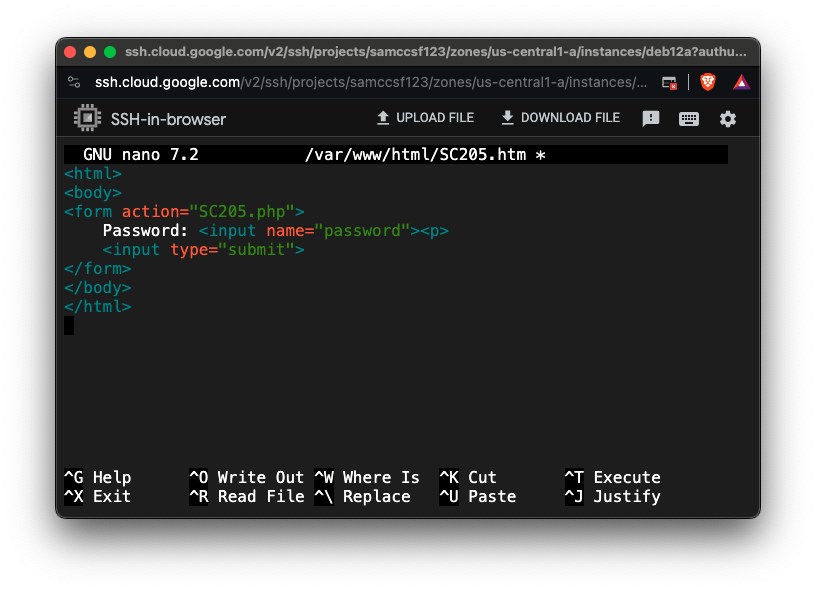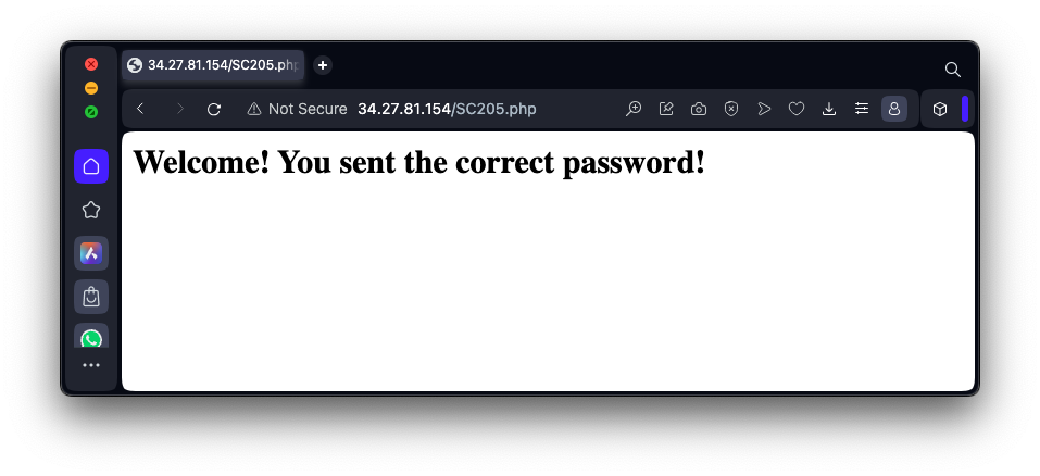 http://35.222.29.122/SC205.htmEnter a Password of OPENSESAME into the form, as shown below, and click the Submit button.