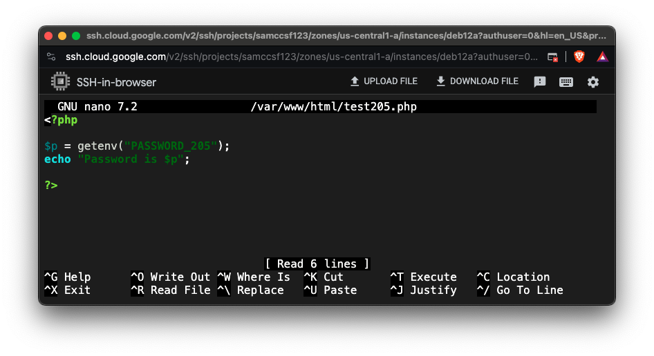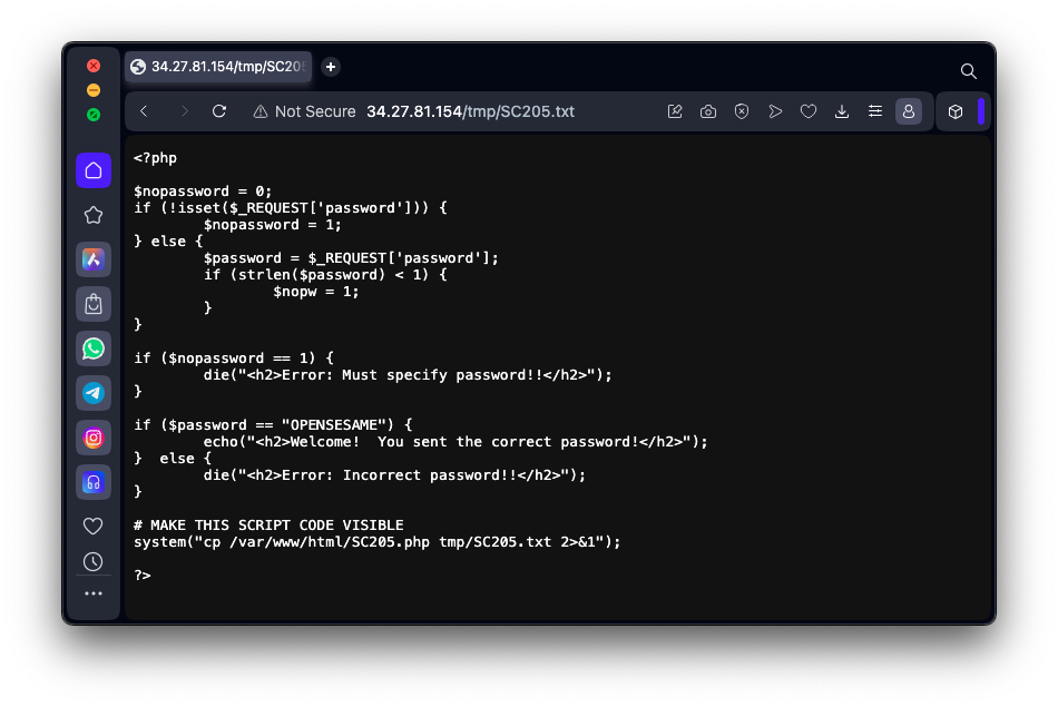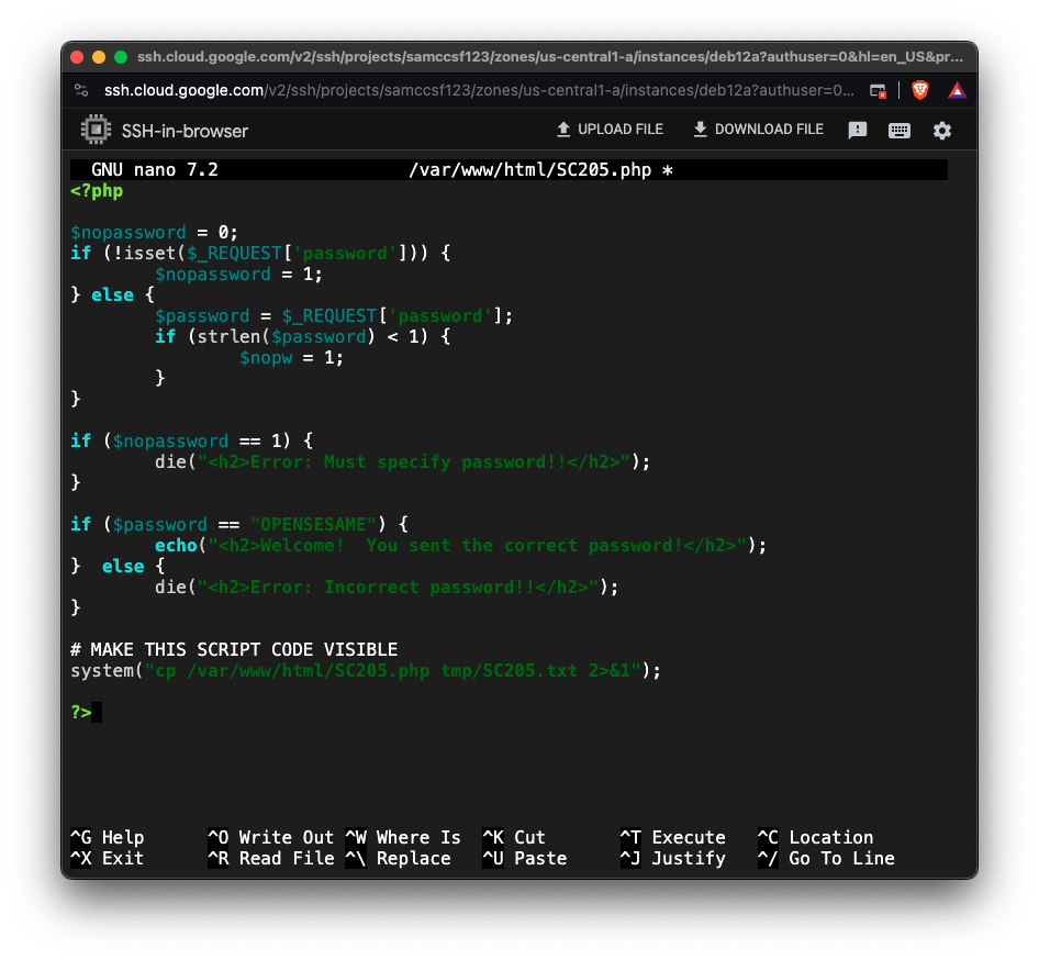http://35.222.29.122/tmp/SC205.txtVerify that your PHP source code is visible, as shown below.