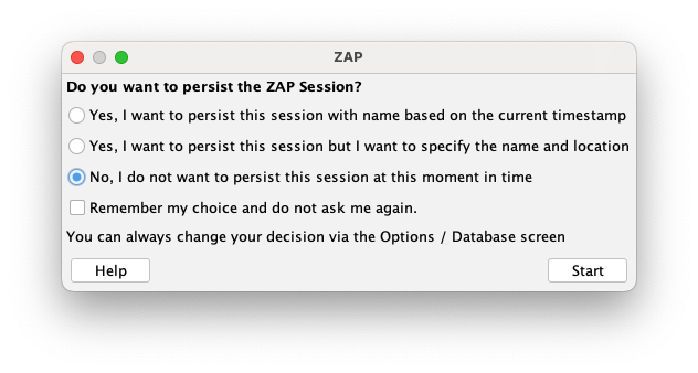 A box asks whether to persist the session, as shown below.