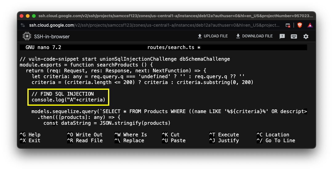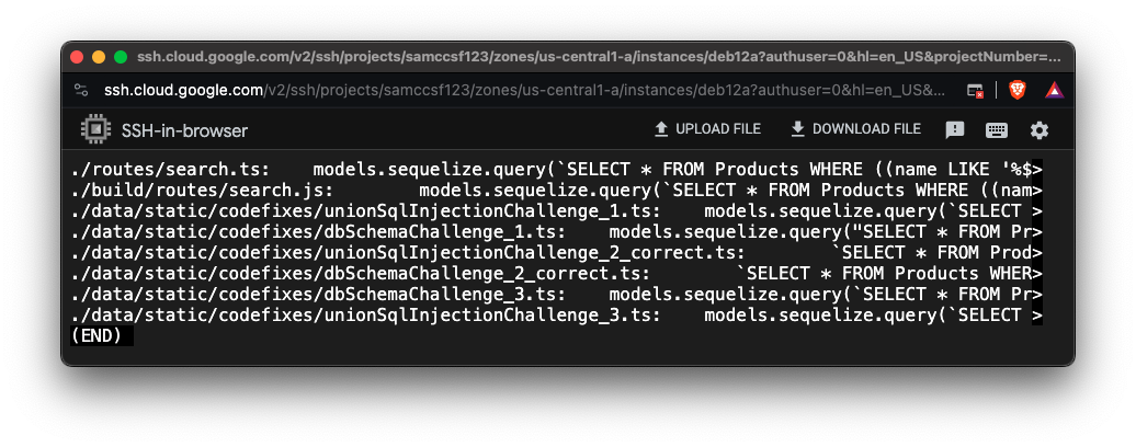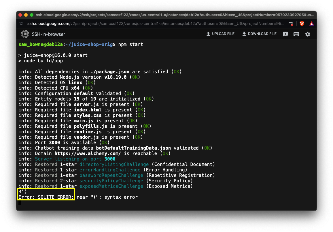 SELECT * FROM Products WHERE ((name LIKEOn your Linux server, type Ctrl+C to stop the Juice Shop.