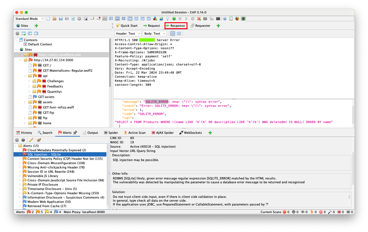 When I used ZAP 2.15.0, it failed to find the SQL injection.To fix that, perform these steps:
