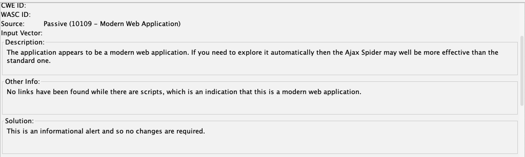 The lower right pane explains that you need to use the Ajax spider for modern apps, as shown below.