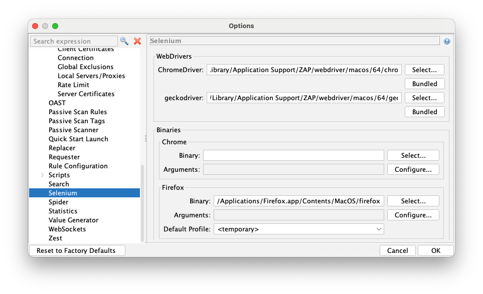 https://www.zaproxy.org/faq/how-can-i-fix-browser-was-not-found/On my Mac, the solution was this:
