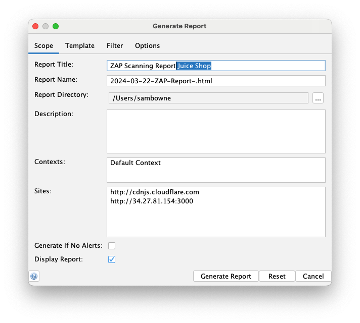 Notice the directory and filename the report will have.