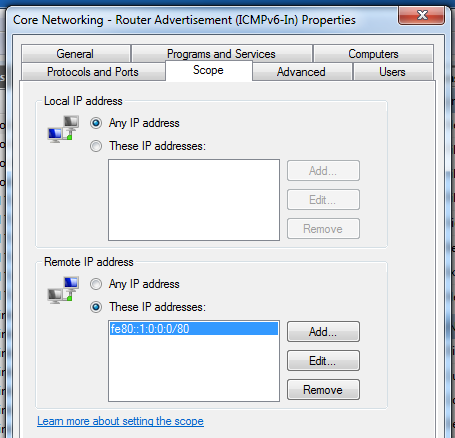 To do this, open "Windows Firewall with Advanced Security" and double-click the "Core Networking - Router Advertisement (ICMPv6-In)" rule, as shown below on this page: