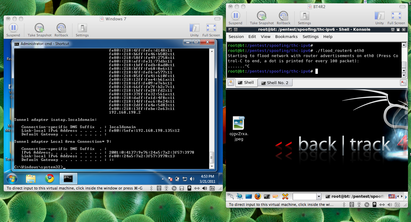 Imagine the effect of a single attacker on a small business, Internet coffeehouse, or any other LAN. This works on all Windows machines with IPv6 enabled, which includes Windows XP, Vista, Windows 7, Server 2008, and more. Mike Qaissaunee reported to me that it also stops X-Box and PS3 game consoles.