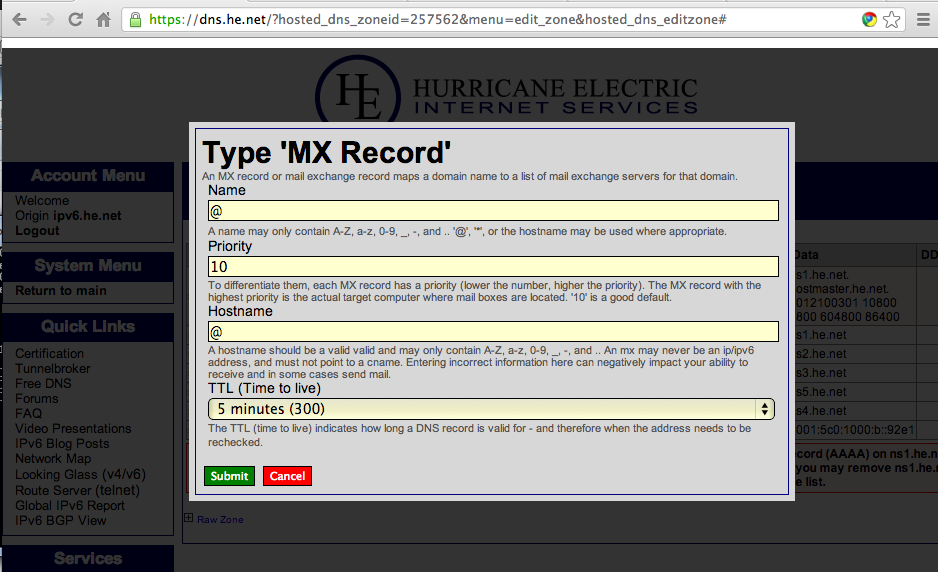 In Firefox, in the http://ipv6.he.net/certification page, paste in the code from the email message. Click the -> button.
