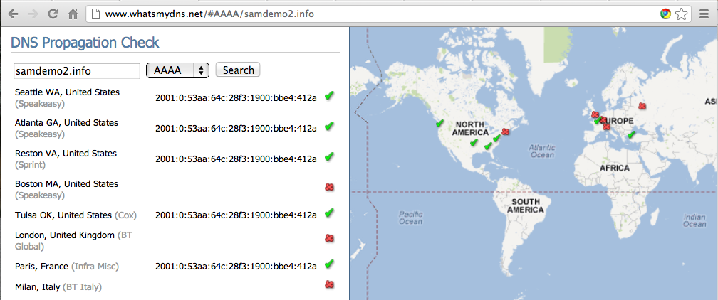 - Test your AAAA record here: http://www.whatsmydns.net/