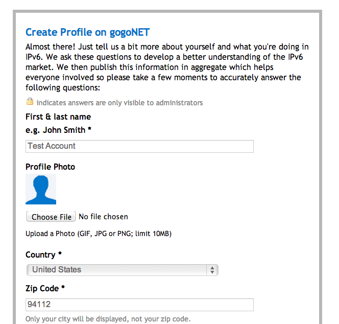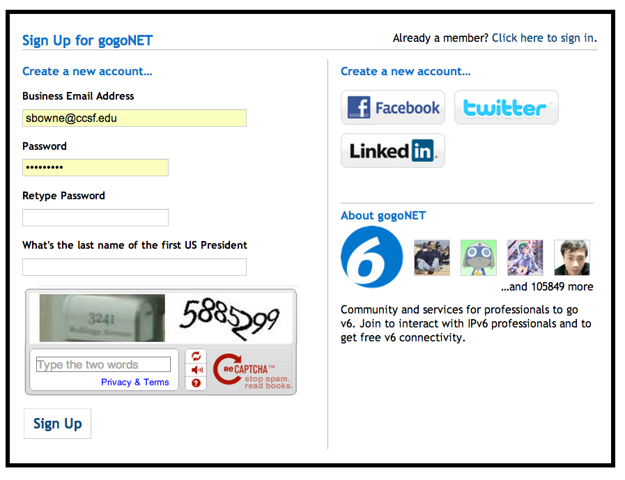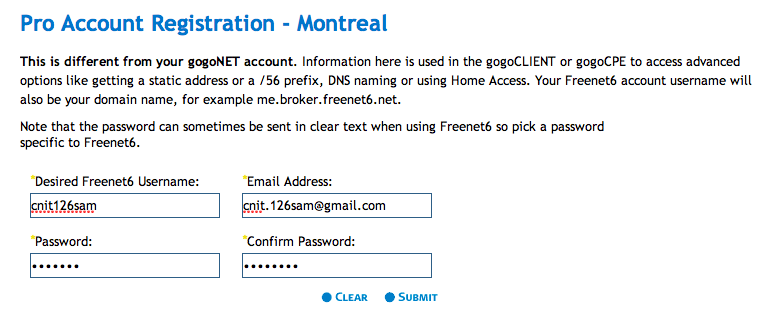 Now you need to sign up for gogoNET (which is different from freenet6). Follow the instructions to create an account, as shown below.