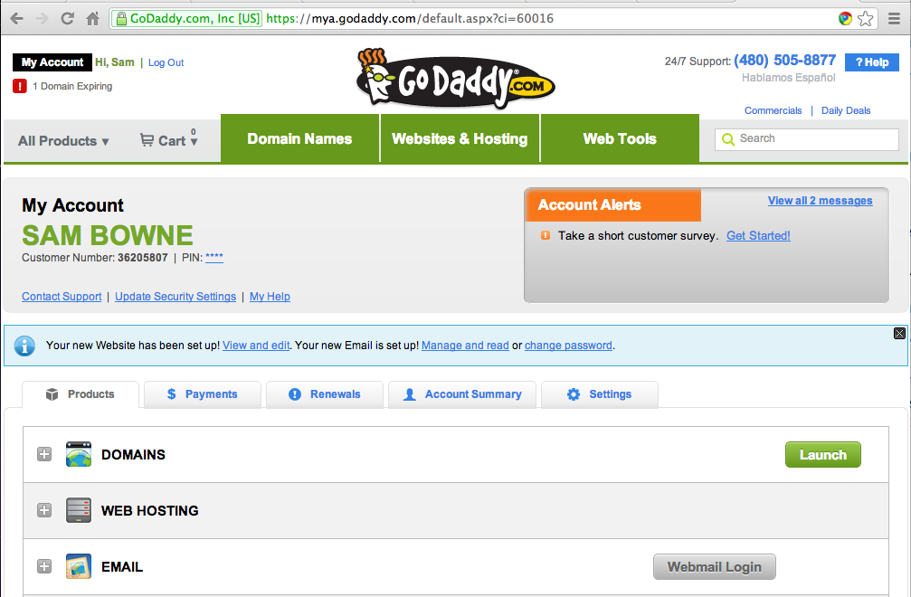 In the Enthusiast section, type your domain name (the one you registered at GoDaddy) and click the "Get a User Code" link. Click the "here" link to continue with the test. Click the "Create URL" button.