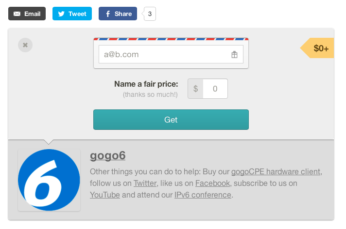 In the "Payment details" page, enter an amount of $0 and an email address, as shown below. Then click the Get button.