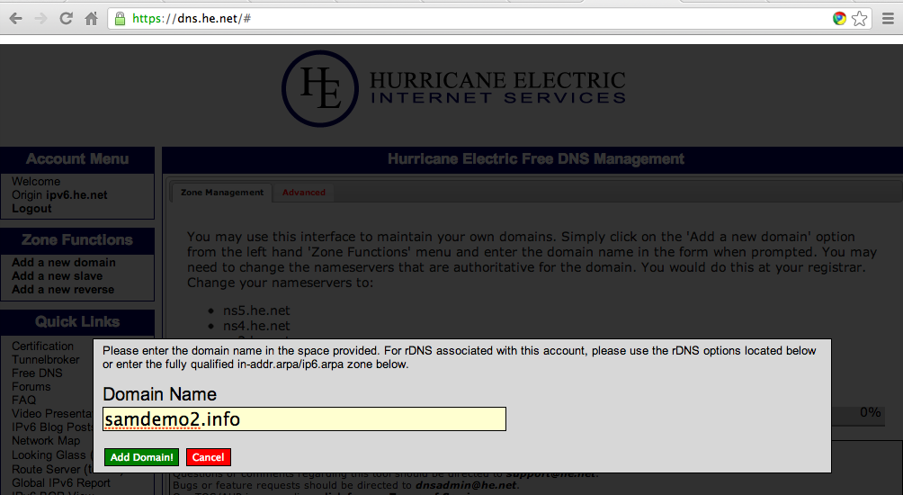 - Use a different machine with a Gogo6 tunnel and try opening your web site with a browser from there by entering your domain name, and using a literal IPv6 address in the URL like this: