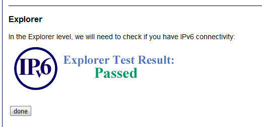 But if you do have an IPv6 connection, you pass the test immediately and see this: