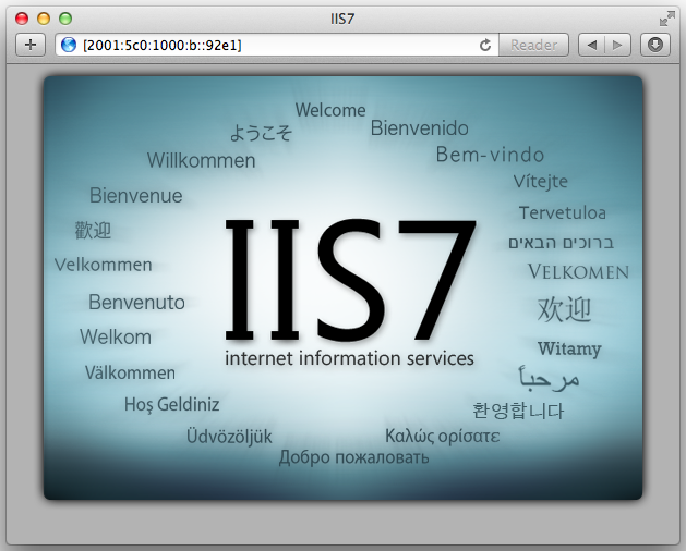 http://[2001:5c0:1000:b::92e1]The IIS default page should open, as shown below: