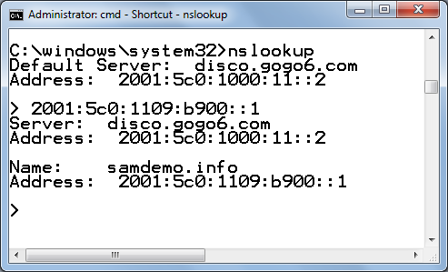 Reverse DNSForward DNS lookups are the normal ones, that start with a domain name like samdemo.info and look up an IPv6 address like 2001:5c0:1000:b::6ac5.Reverse DNS starts with the IPv6 address and looks up the domain name. This is a common test performed by email servers, to detect spammers. If a domain name doesn't resolve with reverse DNS, that indicates that there is something suspicious about the mail server, and some email servers will refuse to accept the mail.