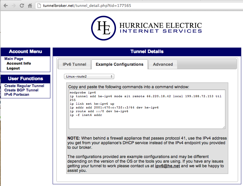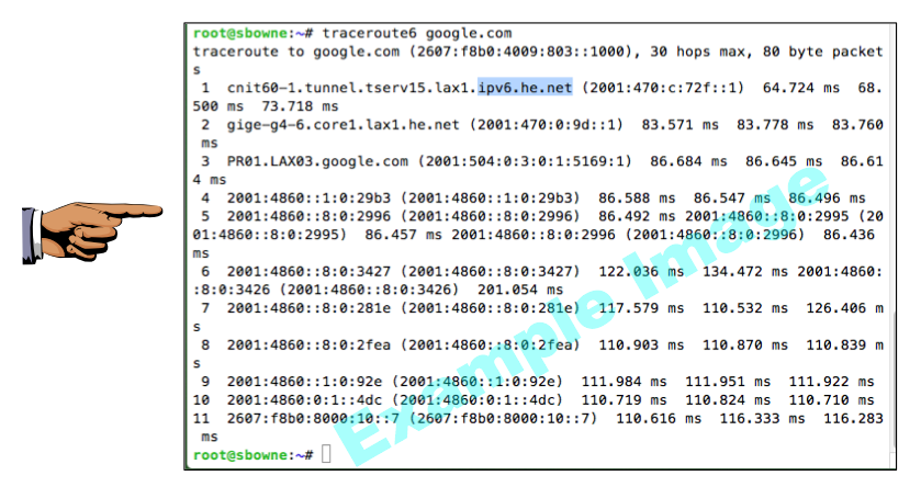 Make sure Hop 1 shows an ipv6.he.net router, as shown in the image above on this page.