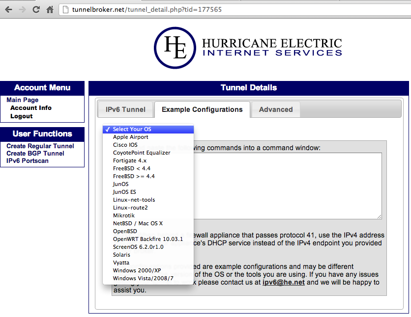 Scroll down to the bottom of the page. The recommended Hurricane Electric location should already be pre-selected. Click the "Create Tunnel" button