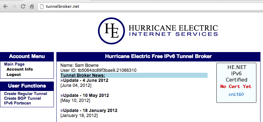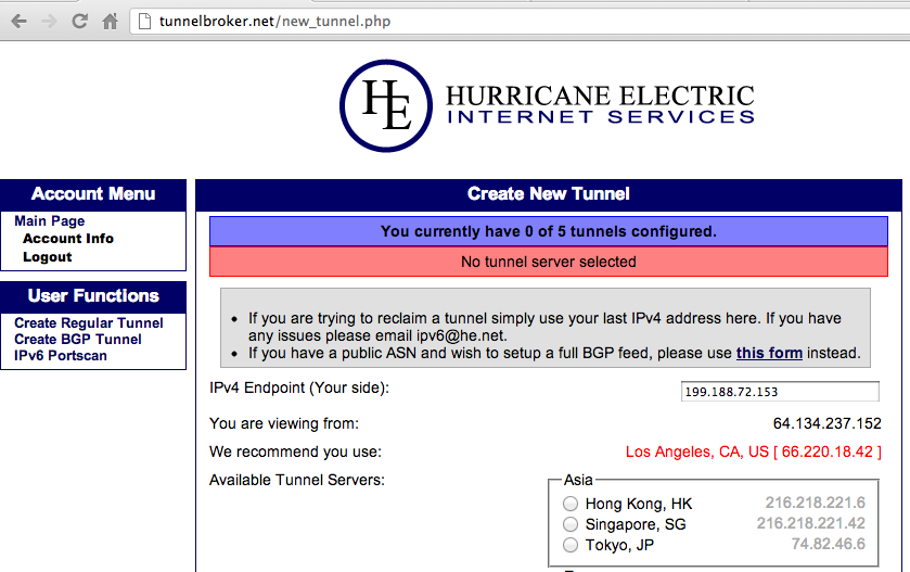 Registering for a HE Tunnel