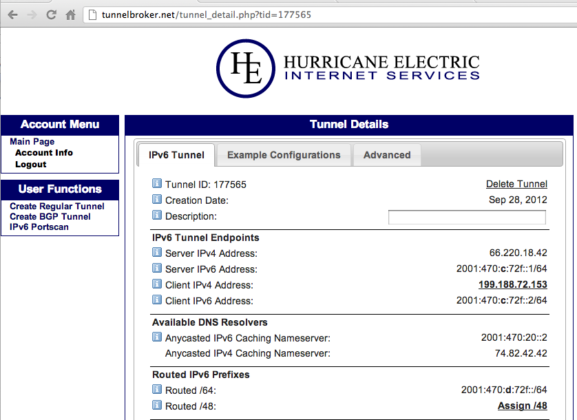 - Server IPv4 Address: This is the IPv4 address of Hurricane Electric's tunnel broker. You will need it to configure the tunnel on your server.