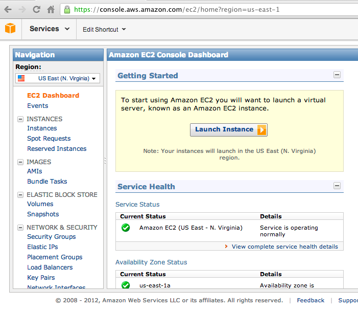 In the next page, on the left side, click Instances, as shown below: