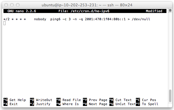 sudo nano /etc/cron.d/he-ipv6