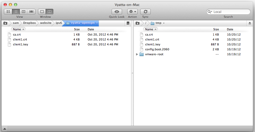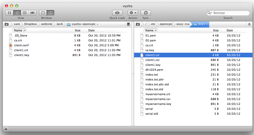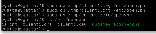 Use SSH to upload these three files to your Vyatta OpenVPN Client's /tmp directory: