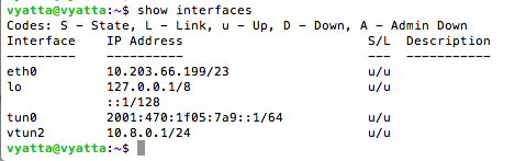set interfaces tunnel tun0 address 2001:470:1f05:7a9::1/64