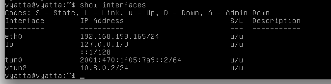 set interfaces ethernet eth0 address 2001:470:8273:1::1/64