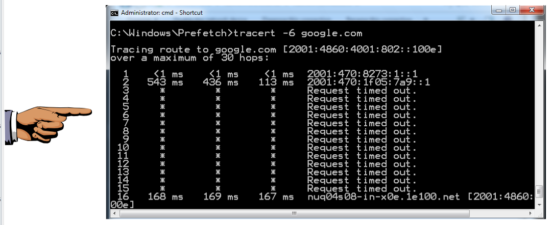 tracert -6 google.com
