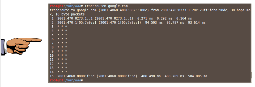Make sure the first two hops have addresses starting with 2001:470Save a screen shot of this image with the filename