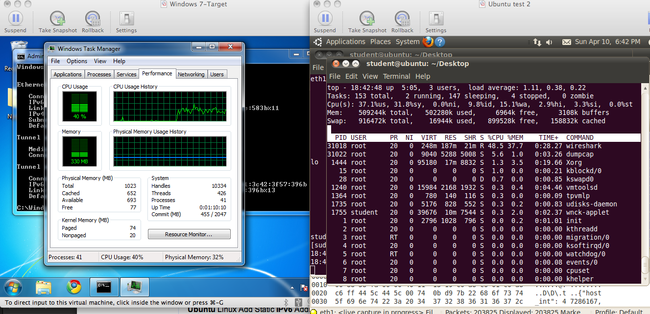 Here is a screen image comparing Windows 7 and Ubuntu Linux undergoing