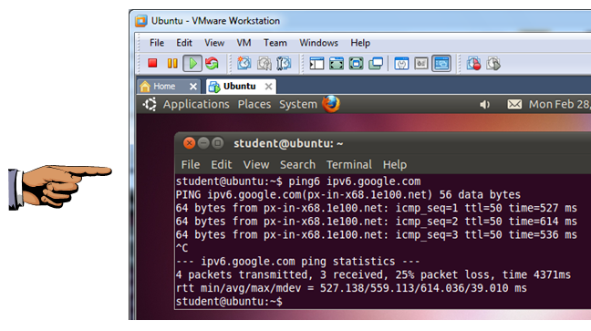 Start the Ubuntu Linux 10.10 VM and log in. On the Ubuntu desktop, click Start, Accessories, Terminal.