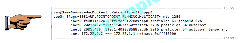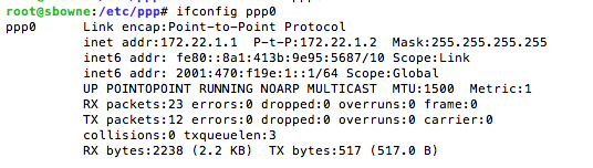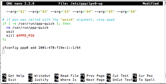 ifconfig ppp0 add 2001:470:f19e:1::1/64