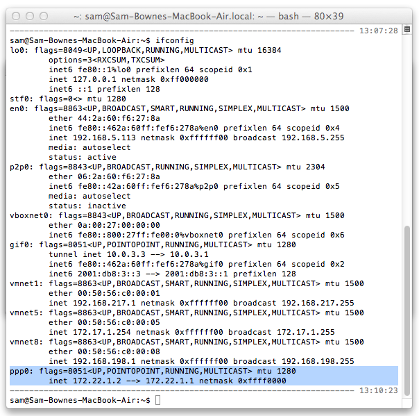 Start a capture on the VPN interface, which is ppp0 on the Mac, as shown below: