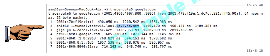 sudo route add -inet6 default 2001:470:f19e:1::1