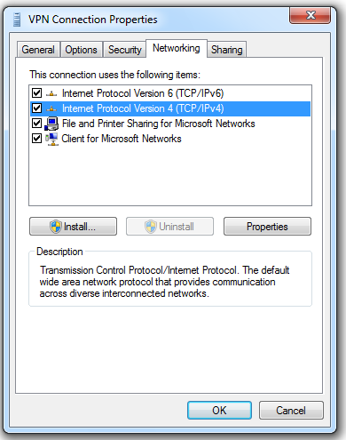 In the "VPN Connection Properties" sheet, click the Networking tab.