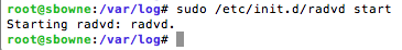 Please note that you cannot use "sudo /etc/init.d/radvd restart" to start radvd the first time, you must use "sudo /etc/init.d/radvd start".