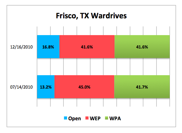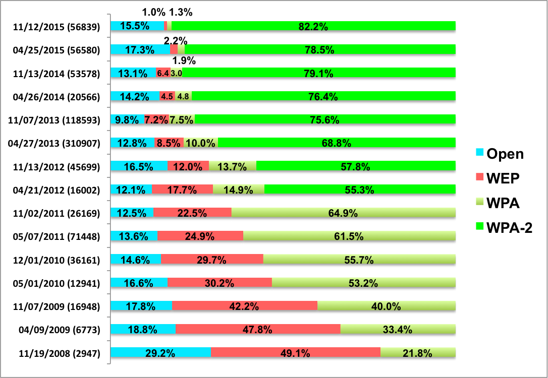 You do need to find a way to get the output into a spreadsheet so you can determine how many networks are using No encryption, WEP, WPA, or WPA-2.